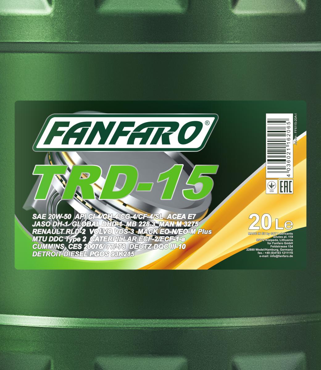 20 Liter FANFARO TRD-15 SHPD 20W-50 FF6115-20 API CI-4/CH-4/SL