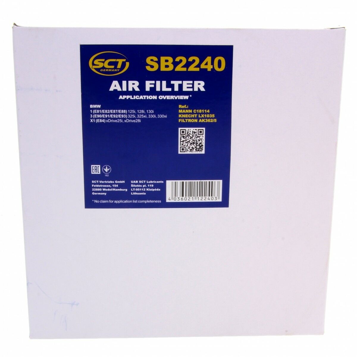SCT Luftfilter Fahrzeugfilter SB2240 Motorfilter Servicefilter BMW 3er X1